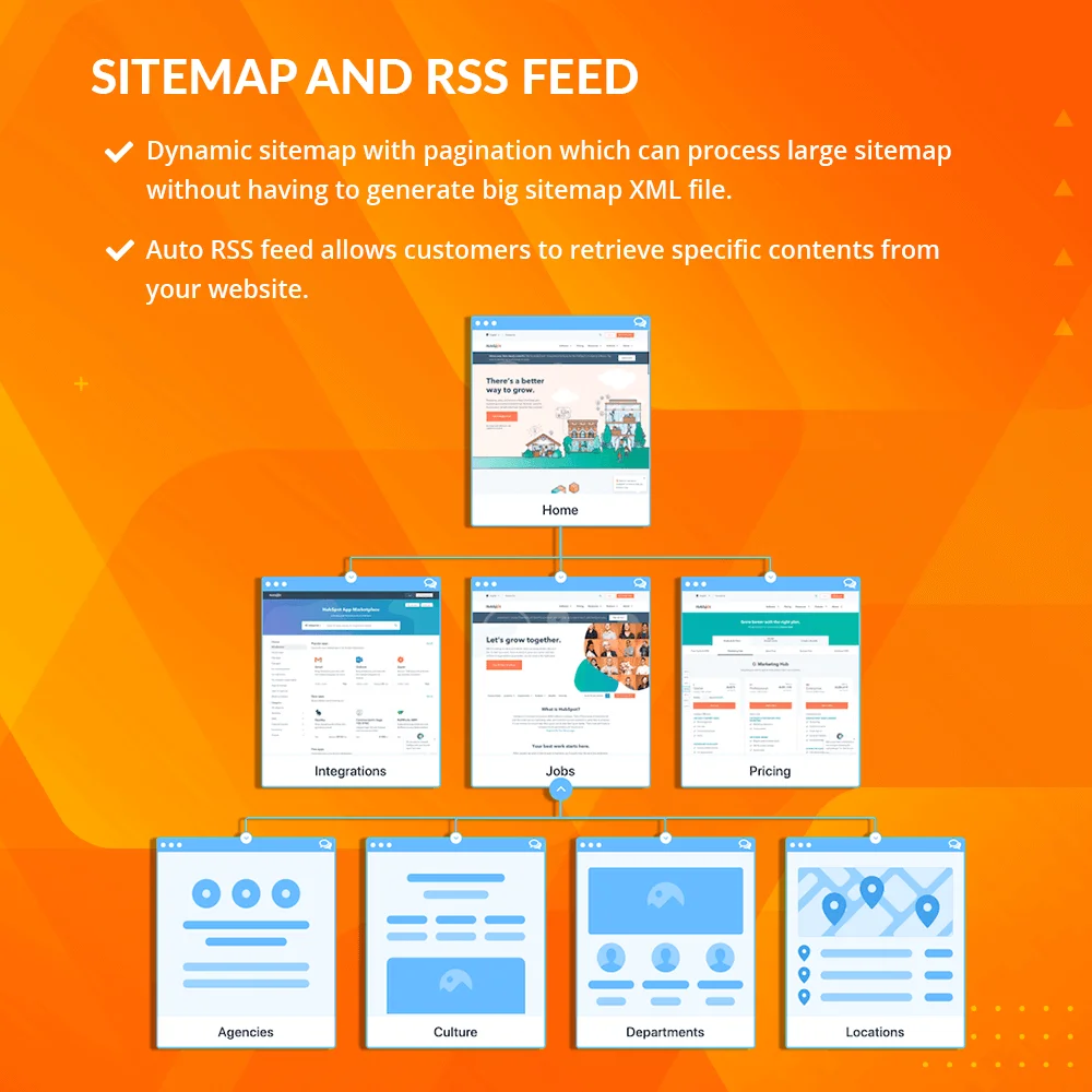 Generate dynamic sitemaps effortlessly with pagination, all without the need for time-consuming cronjobs. Now, with our new feature, your sitemaps are automatically submitted to Google Search Console through a cronjob, ensuring seamless updates and improved search engine indexing. Additionally, our module offers automatic RSS feed capabilities, ensuring your customers receive fresh and unique content from your website.