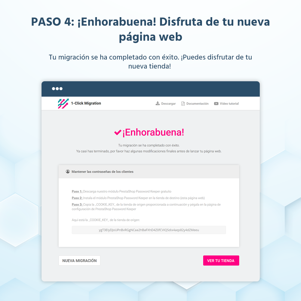 Si ya tienes un sitio web de PrestaShop en ejecución en una versión antigua de PrestaShop (1.7, 1.6, 1.5), ¡este módulo es para ti! "1 CLICK to Migrate or Upgrade" - uno de los mejores módulos de migración de PrestaShop te ayudará a migrar rápidamente tu sitio web y gestionar toda la transferencia de datos a PrestaShop 9 o PrestaShop 8.x (última versión) sin necesidad de conocimientos de programación ni comprensión avanzada del software de comercio electrónico PrestaShop.