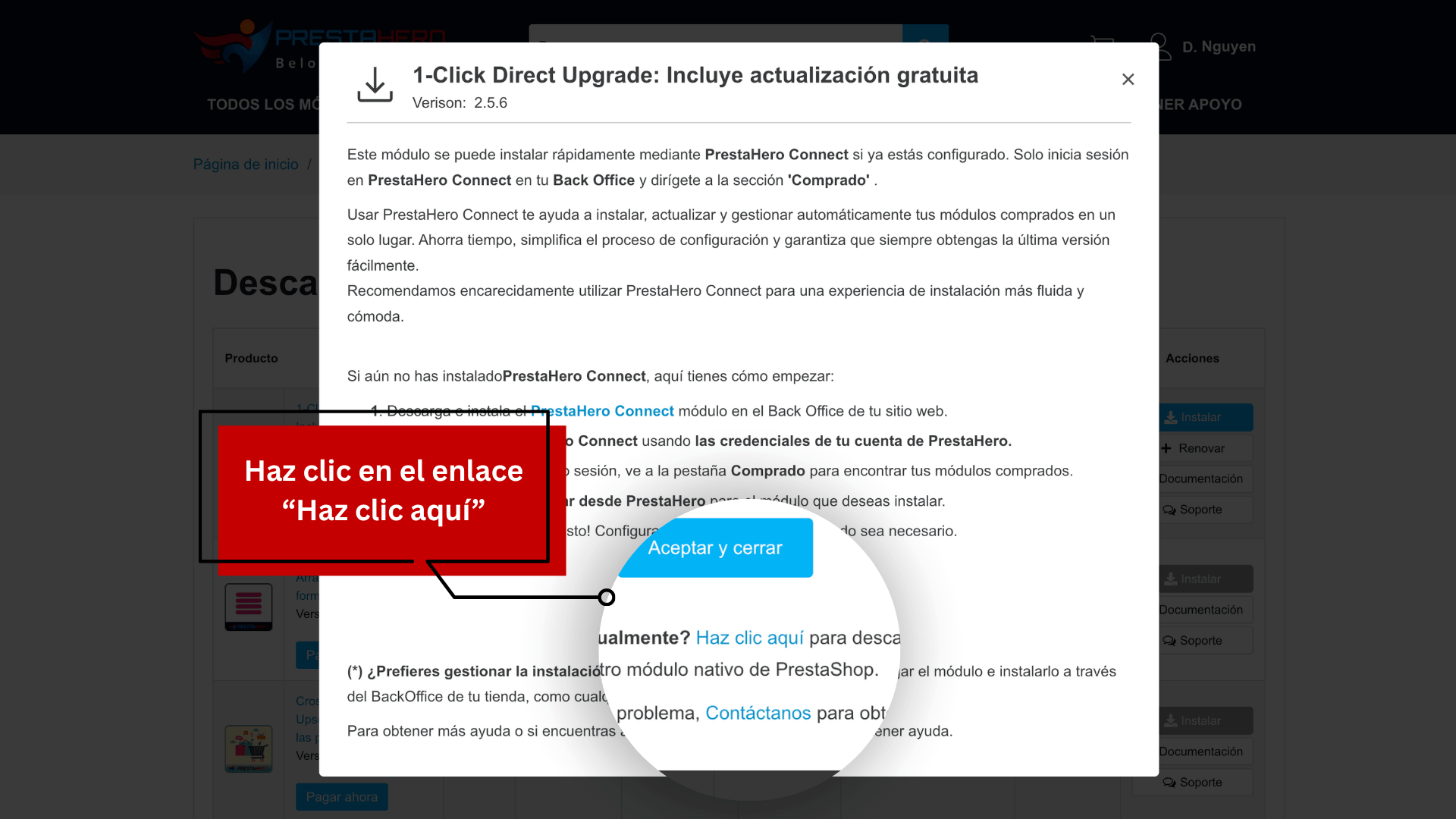 Puedes instalar el módulo directamente usando PrestaHero Connect para una configuración más rápida y sencilla.
