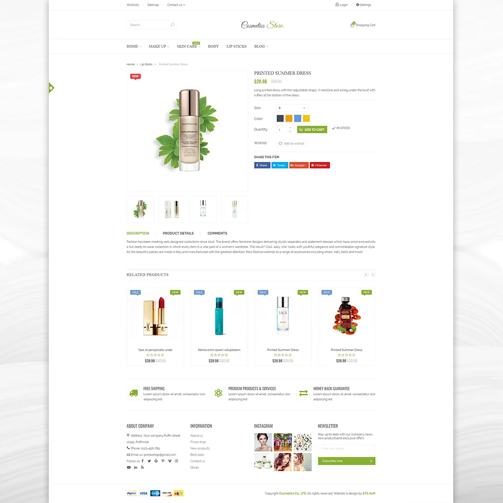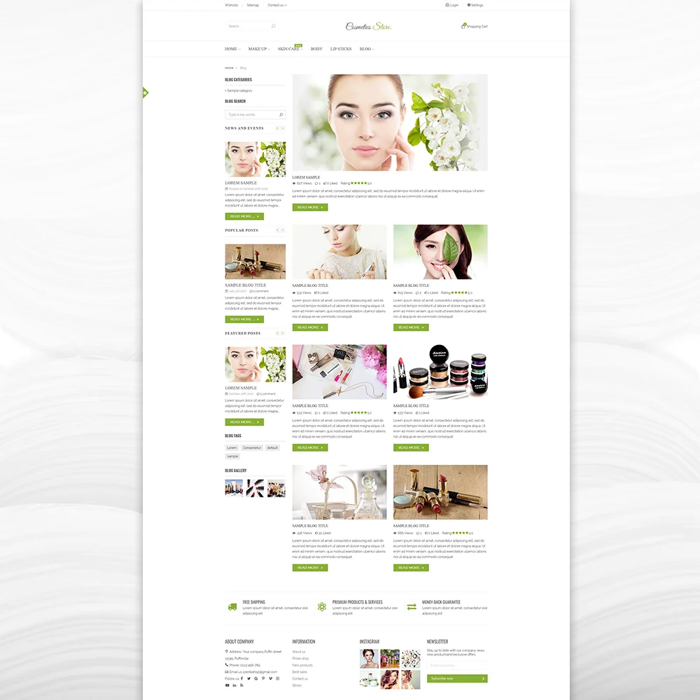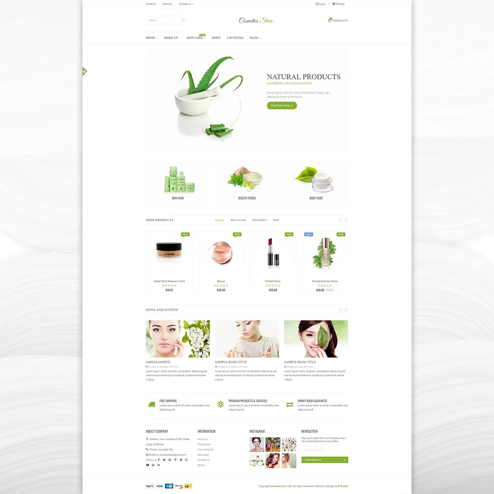 +4 MoreCosmetics Store è il nostro nuovo tema PrestaShop, è il tema PrestaShop più bello e professionale adatto per negozi online di cosmetici, salute e bellezza. "Cosmetics Store" è molto flessibile e facilmente personalizzabile, viene anche fornito con un gran numero di funzionalità avanzate che ti aiutano a costruire un sito web di e-commerce di successo.