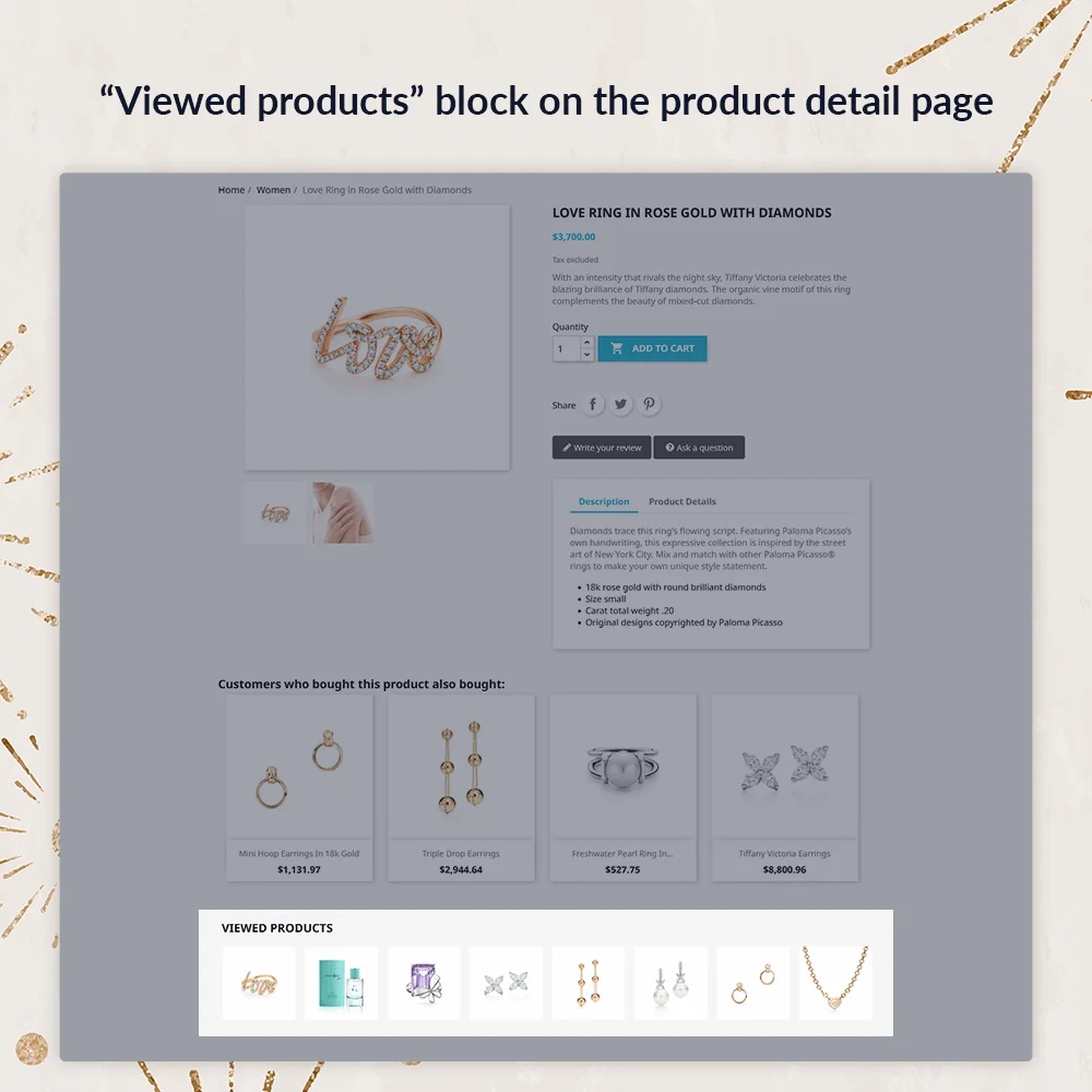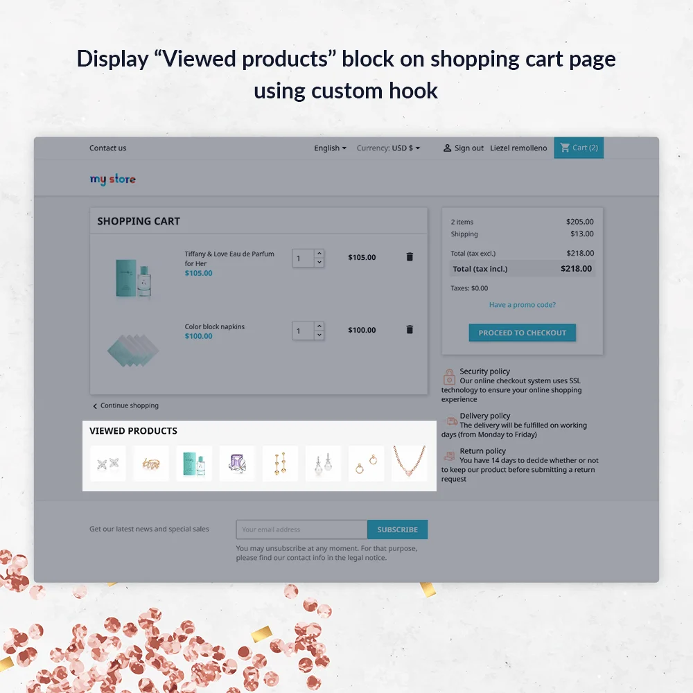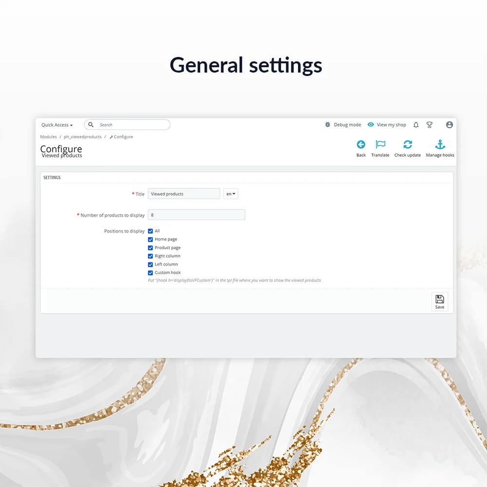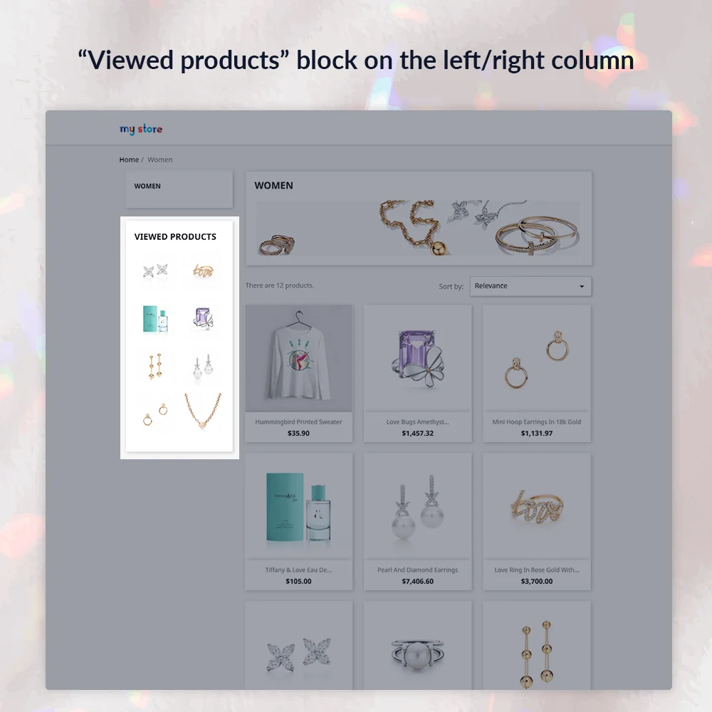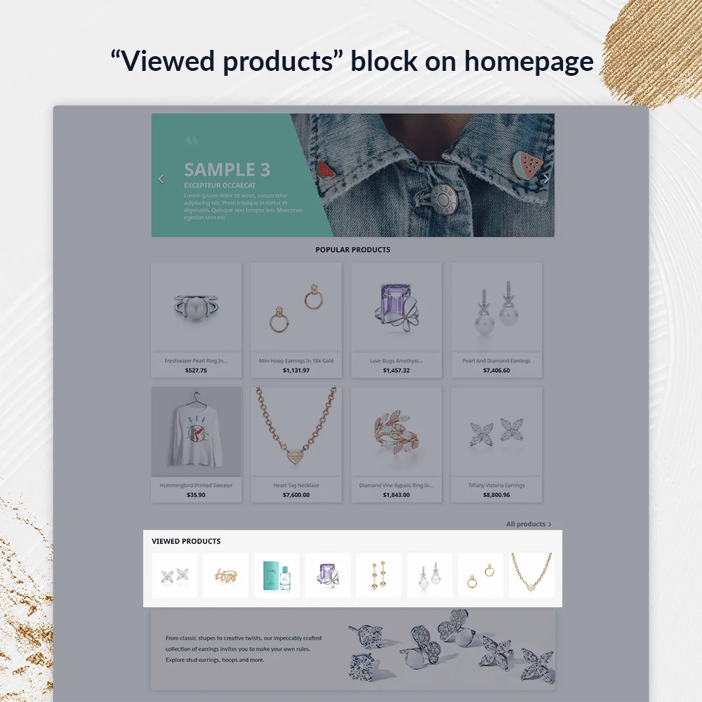 Mais vous pouvez résoudre complètement ce problème avec Viewed Products - notre module PrestaShop pour les produits consultés récemment qui peut vous aider à afficher les produits consultés où vous le souhaitez. Et l'important est que les produits consultés récemment seront affichés en haut de la liste! C'est exactement ce dont nous avons besoin!