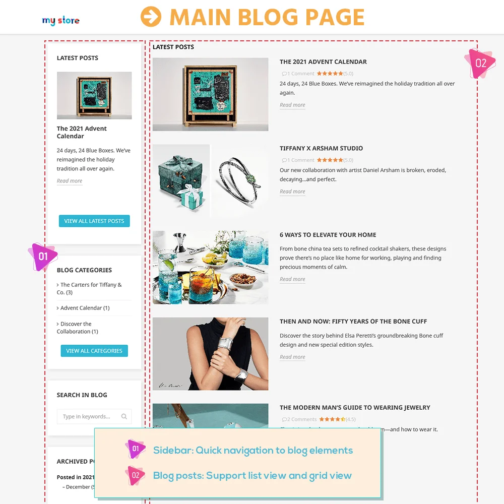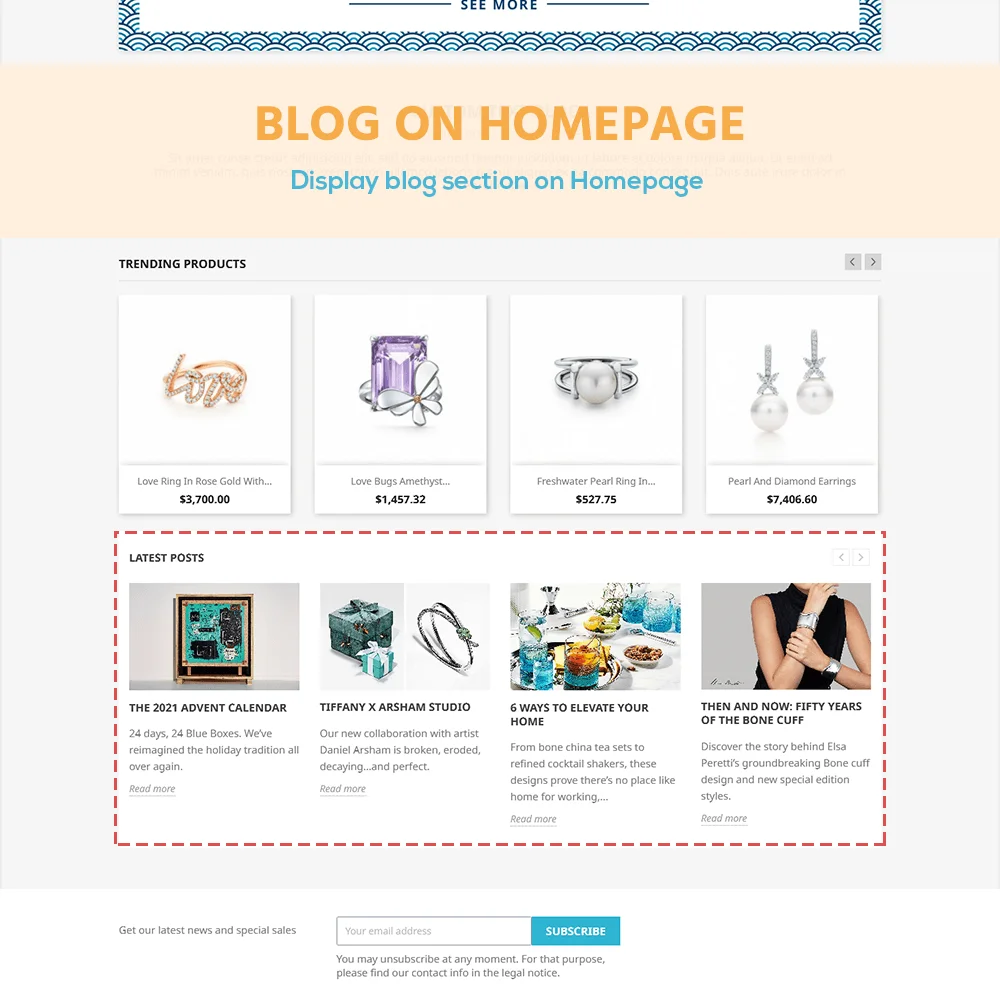 Actuellement, pour un site web de vente en ligne, un blog n'est pas simplement un endroit pour partager des informations mais aussi un moyen très utile d'augmenter le trafic sur le site web en publiant des blogs sur les utilisations des produits, en partageant des astuces, des tutoriels, etc. Il peut être considéré à la fois comme un endroit pour mettre à jour et partager les informations du magasin avec les clients, ainsi qu'un outil pour enrichir le site web.