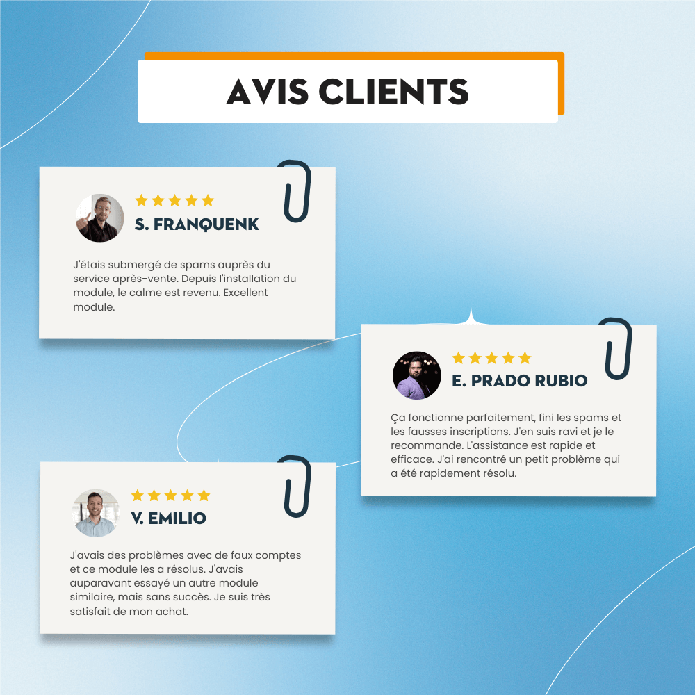 Vous êtes agacé par les messages indésirables envoyés en continu depuis le formulaire de contact de votre site web ? Vous avez des maux de tête avec les comptes clients de spam enregistrés quotidiennement sur votre site web ? Ou des robots automatisés perturbateurs envoient-ils du spam dans votre formulaire d'inscription à la newsletter au lieu de clients potentiels ? Le spam doit être le plus grand cauchemar de tout propriétaire de boutique PrestaShop.