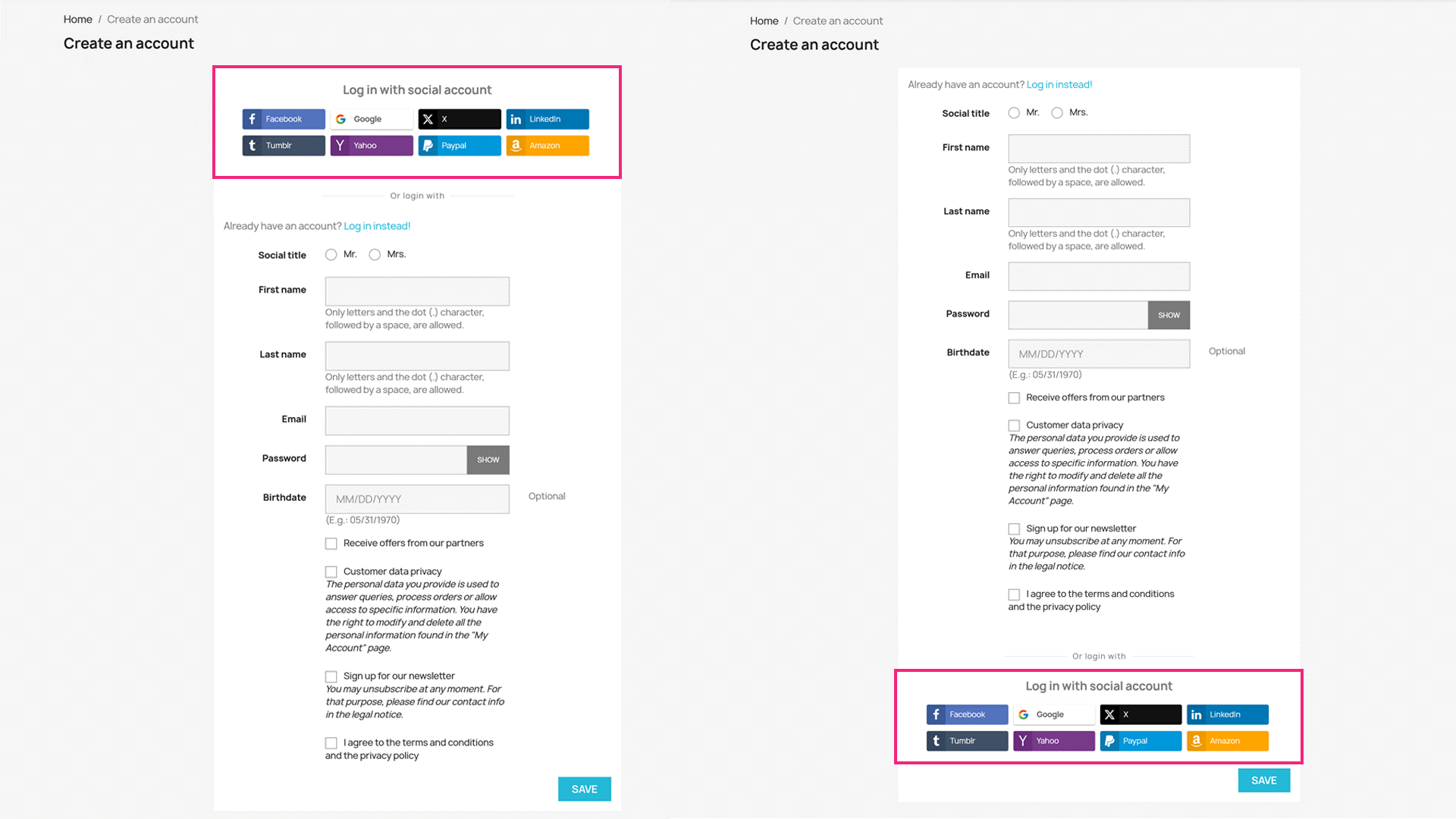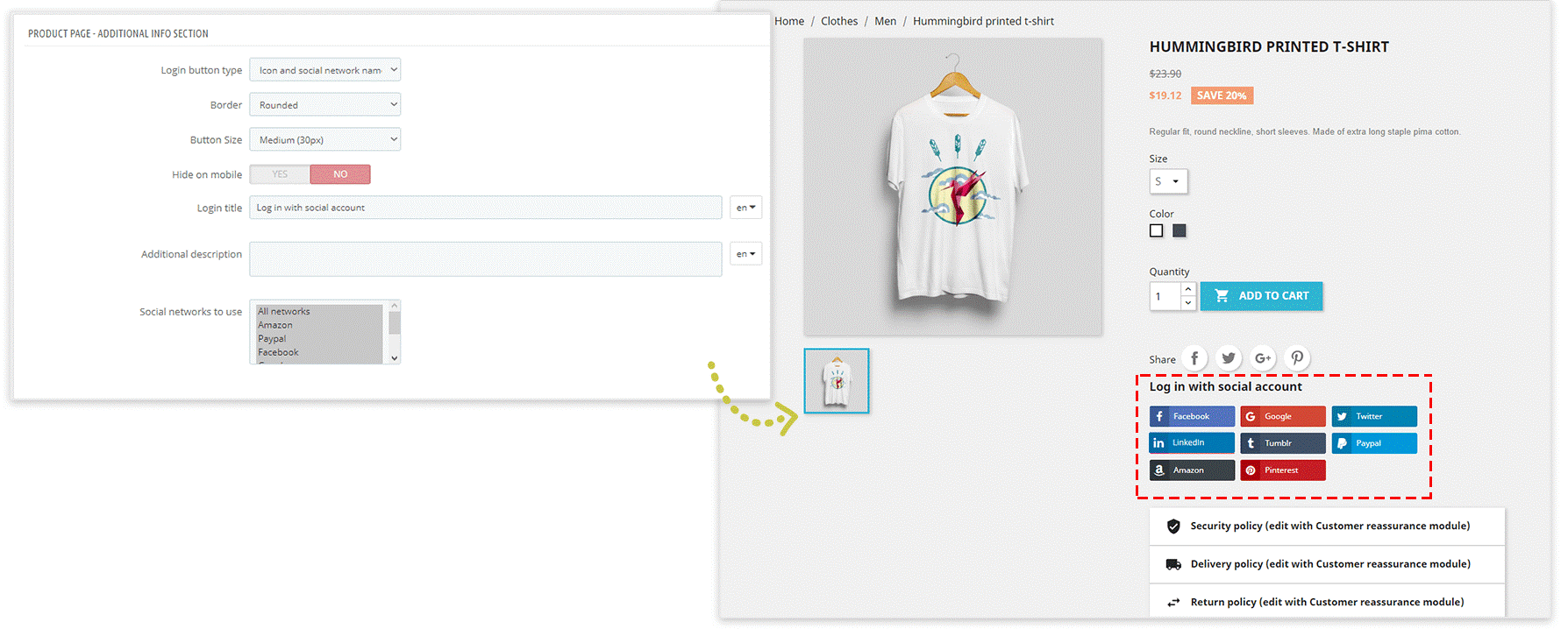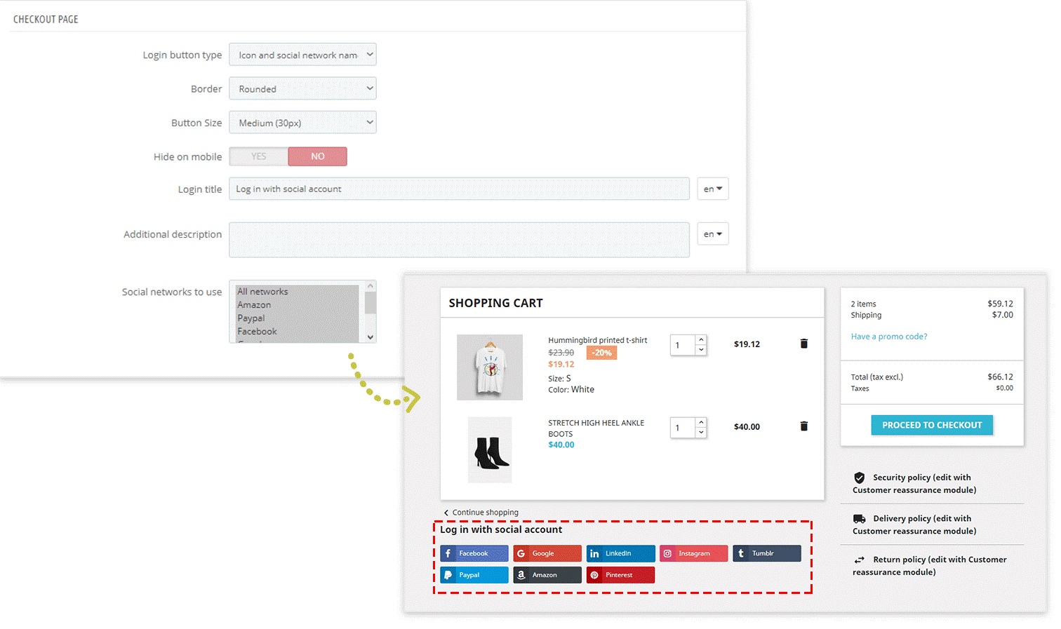 Similar to the registration page, you can configure how social login buttons will appear on the login page. Adjust positions and styles to align with your store’s design.