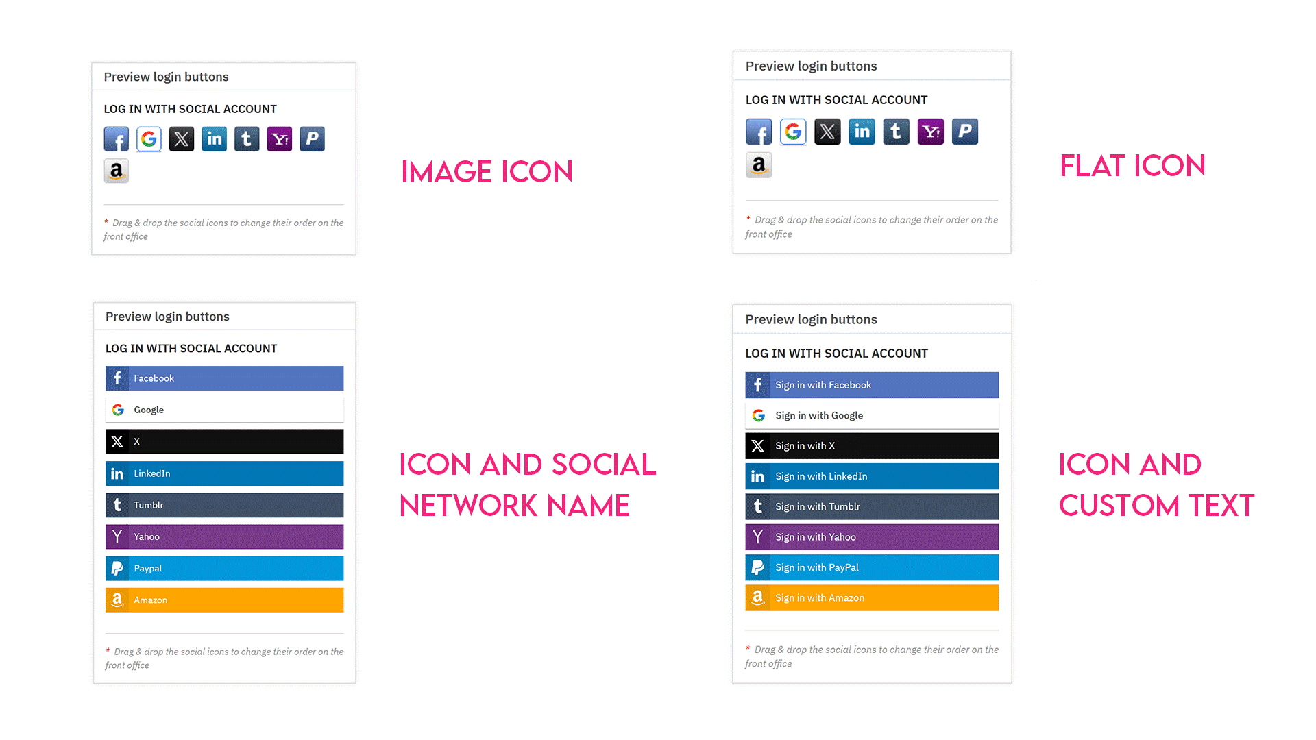 You can also drag and drop the social icons in the preview panel to rearrange their order as they appear in the front office.