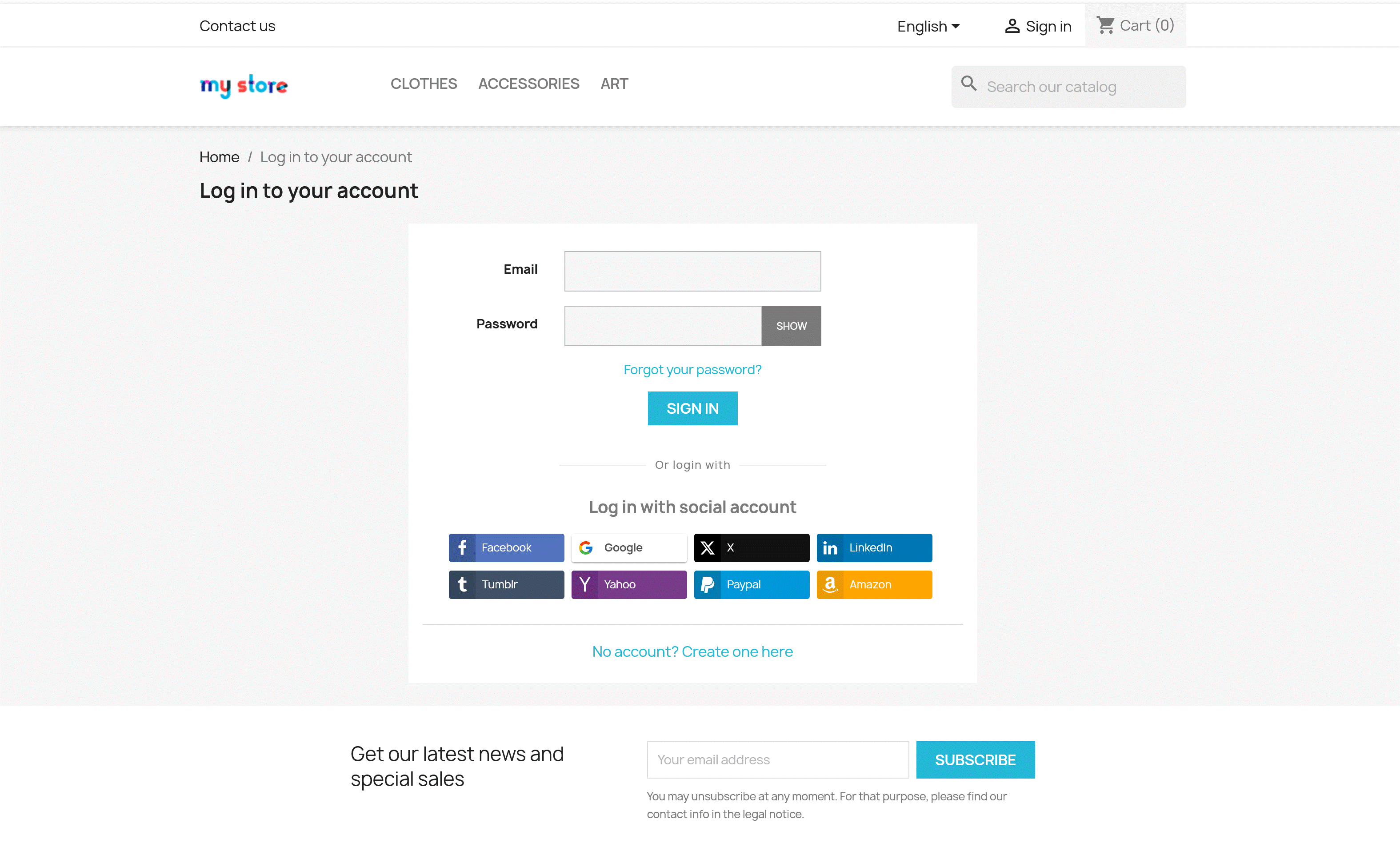Add social login buttons to your footer, allowing customers to log in or register from any page of your store.