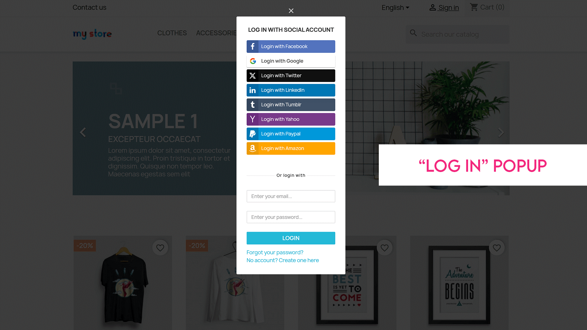 - The widget allows customers to log in using a social network or a standard email and password combination.
