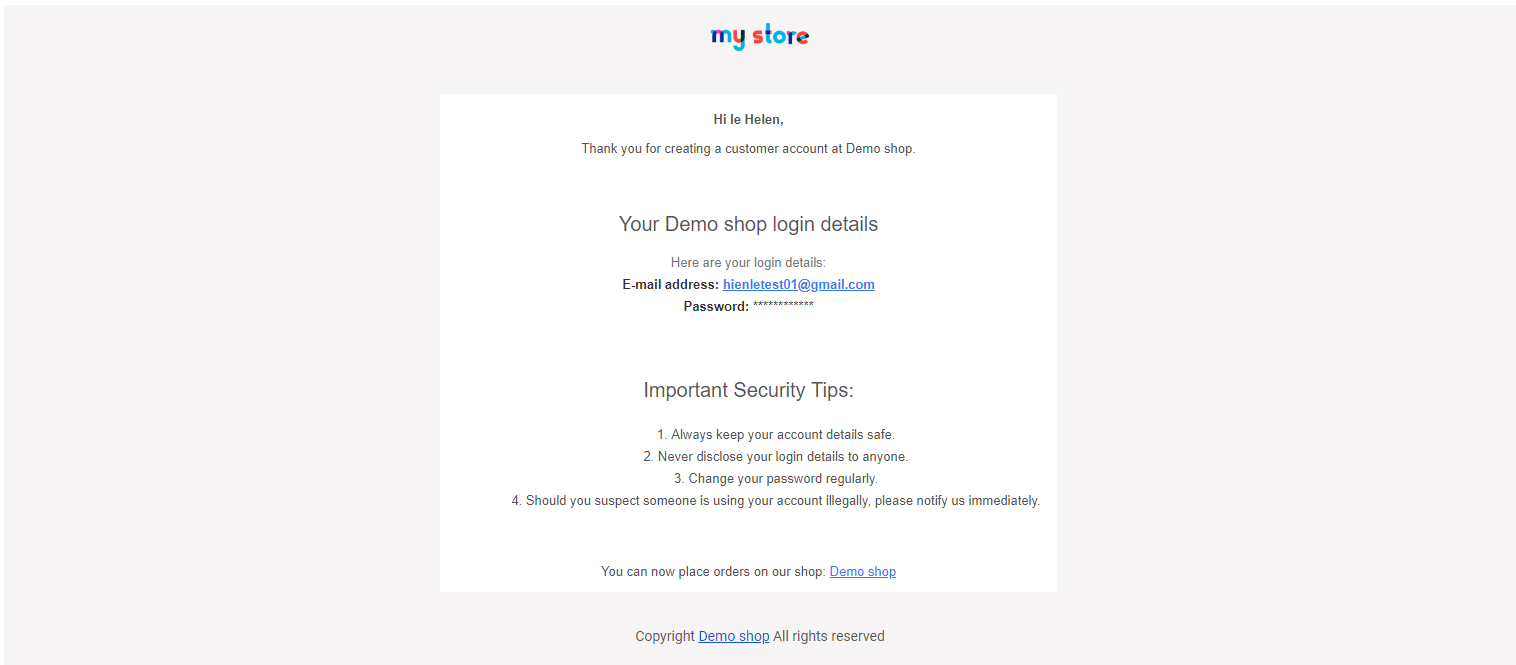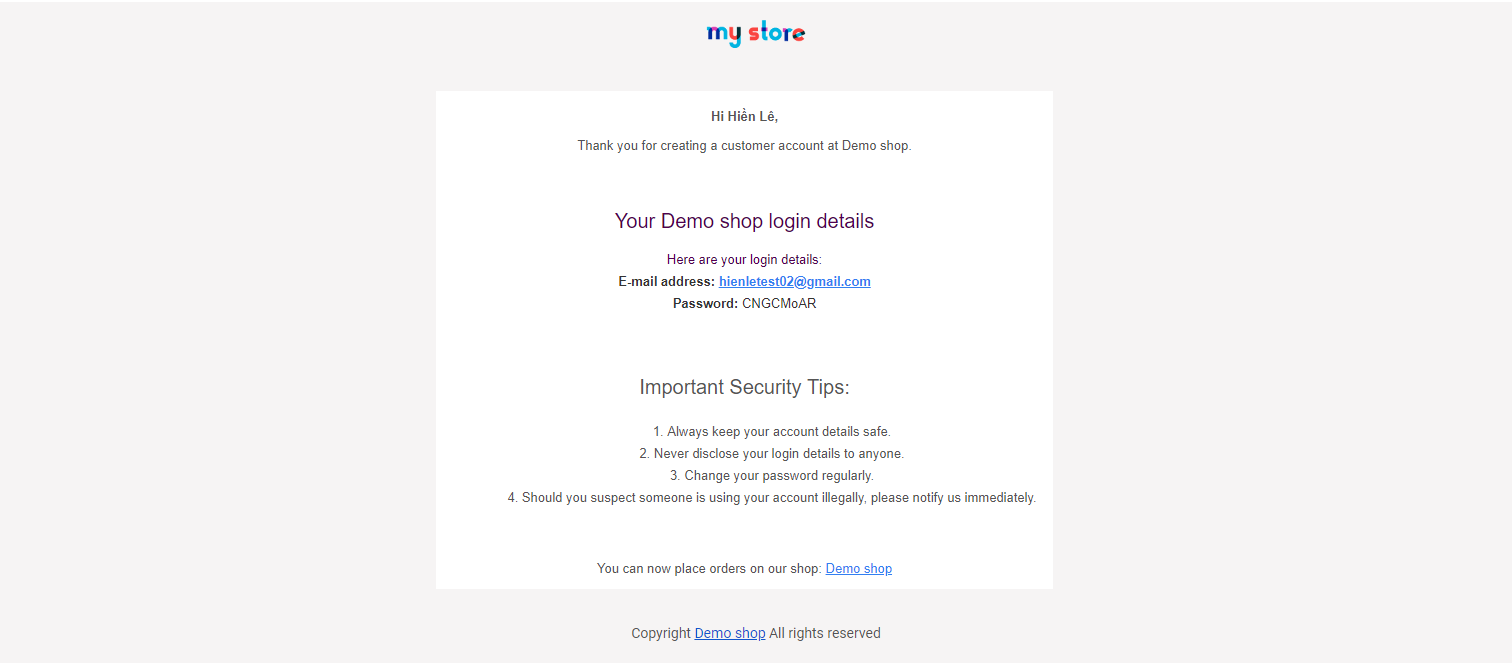 • Streamlined process: Automatically generating and sending login credentials saves time for both customers and store administrators.