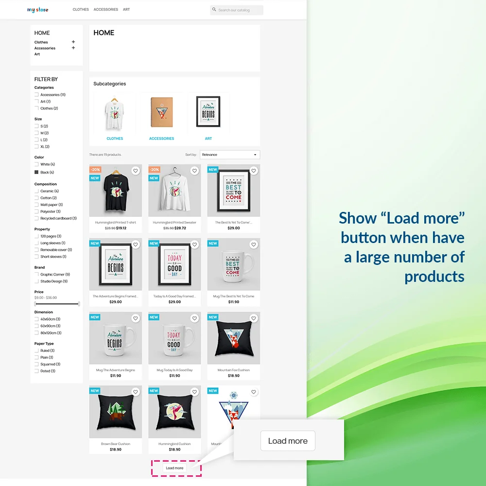 Con il nostro modulo Product list pagination, puoi scegliere 1 delle 3 modalità di paginazione in base alle tue esigenze:
