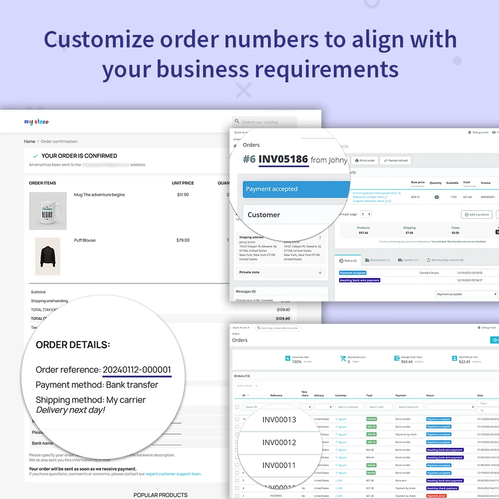 Trasforma la gestione degli ordini del tuo negozio PrestaShop con il nostro modulo gratuito Custom Order Reference. Personalizza facilmente i numeri d'ordine, scegliendo tra formati sequenziali, basati sulla data o alfanumerici. Prendi il controllo del tuo sistema di ordini senza sforzo!