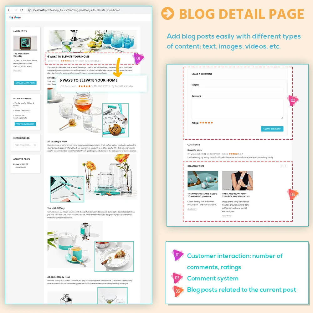 Hiện nay, đối với một trang web bán hàng trực tuyến, một blog không chỉ đơn giản là nơi chia sẻ thông tin mà còn là một cách rất hữu ích để tăng lưu lượng truy cập vào trang web bằng cách đăng blog về cách sử dụng sản phẩm, chia sẻ mẹo, hướng dẫn, v.v. Nó có thể được coi là một nơi để cập nhật và chia sẻ thông tin của cửa hàng với khách hàng, cũng như một công cụ để làm phong phú trang web.